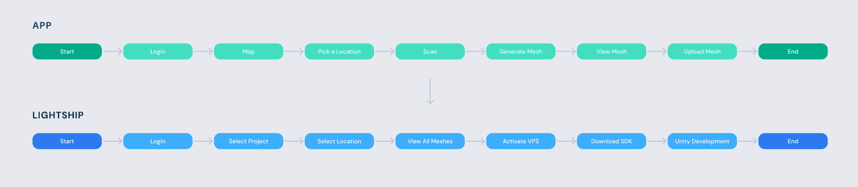 The Wayfarer app is part of the company’s developer product line, Lightship. Thus, I had to design both the experience inside the app and outside on other company's platforms. How would the user go from one company’s product to another? How do all the products connect with each other?